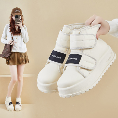 加绒高帮雪地靴女冬季新款学生ins韩版保暖休闲厚底增高