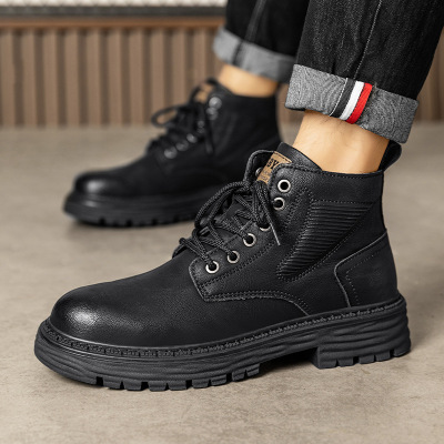 秋冬加绒新款马丁靴复古潮流高帮工装运动马丁靴休闲工作劳保男靴