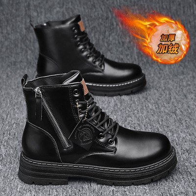 秋冬新款马丁靴加绒高帮英伦风百搭增高男士棉靴大复古户外男靴