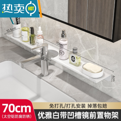 敬平卫生间镜前置物架壁挂水龙头浴室洗脸台洗漱用品收纳一字板免打孔 白色70CM[√带缺口√]浴室置物架