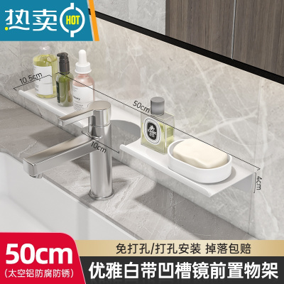 敬平卫生间镜前置物架壁挂水龙头浴室洗脸台洗漱用品收纳一字板免打孔 白色50CM[√带缺口√]浴室置物架