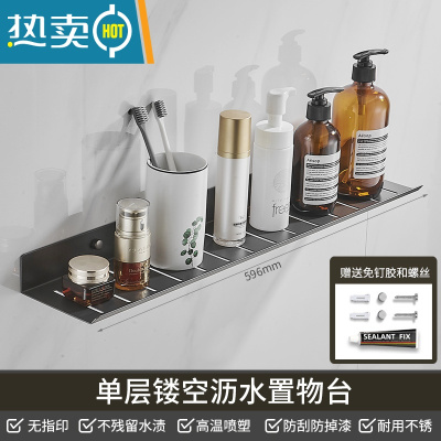 敬平枪灰色卫生间浴室柜水龙头置物架洗手间浴室收纳厕所免打孔化妆架 枪灰单层置物架-60cm浴室置物架