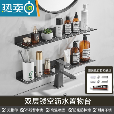 敬平枪灰色卫生间浴室柜水龙头置物架洗手间浴室收纳厕所免打孔化妆架 枪灰双层置物架-60cm浴室置物架