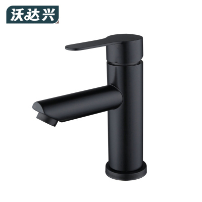 沃达兴 水龙头 黑色宽把手直嘴面盆龙头/个