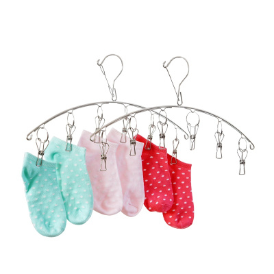敬平不锈钢衣架 袜架内衣夹子 八角衣服夹子防风夹子晾晒多头设计