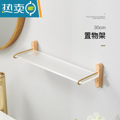 敬平浴室胡桃木置物架不锈钢毛巾架卫生间亚克力洗漱壁挂收纳架免打孔 榉木30cm置物架浴室置物架