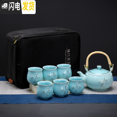 三维工匠提梁壶茶具套装家用茶杯功夫茶具托盘茶壶定制礼盒装送礼一壶六杯 旅行包套装(茶具备注款式就