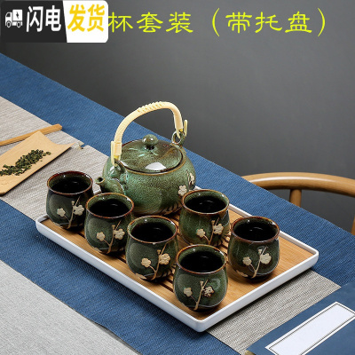 三维工匠提梁壶茶具套装家用茶杯功夫茶具托盘茶壶定制礼盒装送礼一壶六杯 窑变梅花绿套装(送茶盘)
