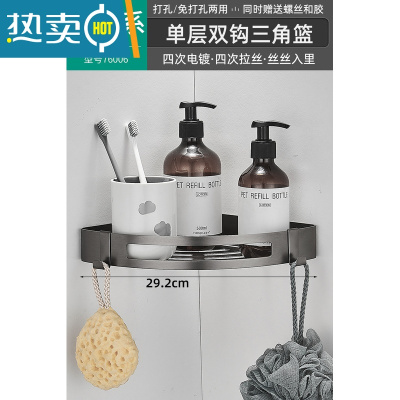 敬平枪灰毛巾架免打孔浴室304不锈钢壁挂式置物架卫生间洗手间浴巾架 单品-单层三角篮(带双钩)浴室置物架