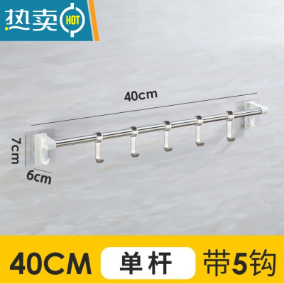 敬平毛巾架免打孔不锈钢浴巾架厕所卫生间挂钩置物架挂毛巾杆壁挂架子 [单杆]莹洁白[带5钩]40厘米浴室置物架