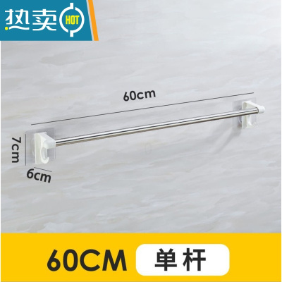 敬平毛巾架免打孔不锈钢浴巾架厕所卫生间挂钩置物架挂毛巾杆壁挂架子 [单杆]莹洁白[无钩款]60厘米浴室置物架