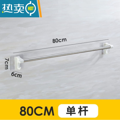 敬平毛巾架免打孔不锈钢浴巾架厕所卫生间挂钩置物架挂毛巾杆壁挂架子 [单杆]莹洁白[无钩款]80厘米浴室置物架