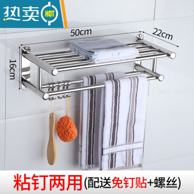 敬平加厚304不锈钢毛巾架浴巾架浴室毛巾置物架免打孔卫生间五金壁挂 201不锈钢工型-50cm(免打孔)浴室置物架