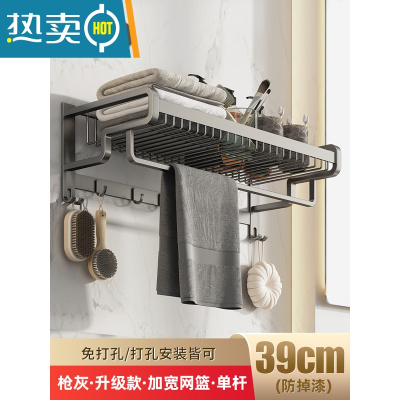 敬平枪灰色轻奢风毛巾架免打孔卫生间浴室浴巾架置物架太空铝架子厕所 店长推荐♥升级款-加宽网篮单杆39cm浴室置物架