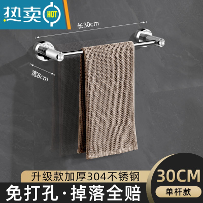 敬平毛巾杆免打孔304不锈钢卫生间加长双杆浴室单杆厕所壁挂式浴巾架 单杆30cm[304不锈钢][免打孔/打孔浴室置物架