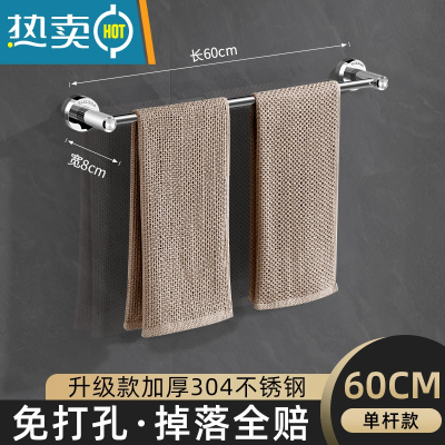 敬平毛巾杆免打孔304不锈钢卫生间加长双杆浴室单杆厕所壁挂式浴巾架 单杆60cm[304不锈钢][免打孔/打孔浴室置物架