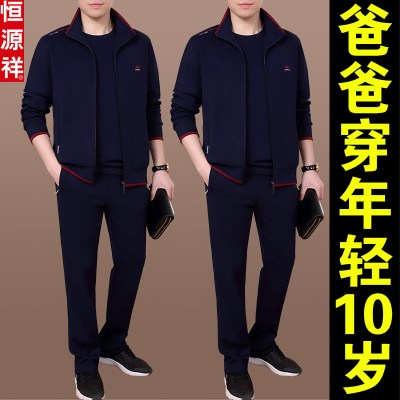 恒源祥名牌中年男士春季运动服套装新款中老年爸爸春秋装休闲外套