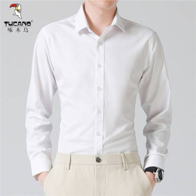 啄木鸟纯色长袖衬衫男春夏季薄款潮流修身大码上班职业装商务正装