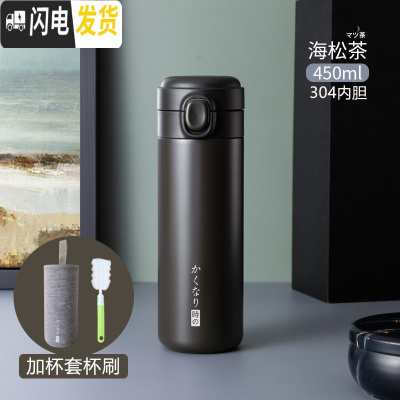 三维工匠便携保温杯316不锈钢小巧女水杯子可爱简约清新ins日式水瓶 海松茶450-304内胆+杯套