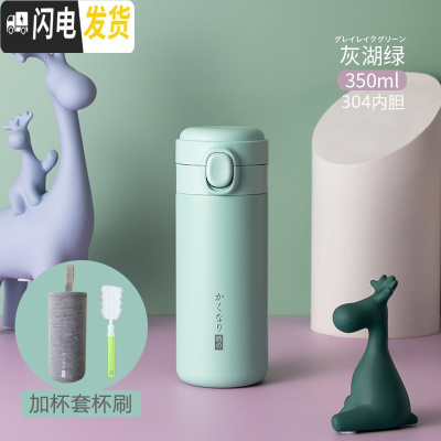 三维工匠便携保温杯316不锈钢小巧女水杯子可爱简约清新ins日式水瓶 灰糊绿350-304内胆+杯套