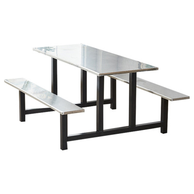 铭威盾学校食堂不锈钢餐桌椅4人6人8人位工厂员工饭堂连体快餐桌椅组合4人位不锈钢(加固)