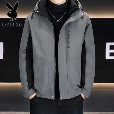 花花公子新款高品质冬季新款户外防寒服三防连帽加厚羽绒棉时尚男装夹克外套