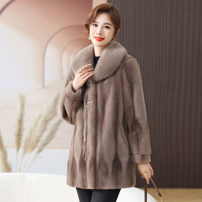 中年妈妈仿水貂绒皮毛一体大衣女秋冬新款阔太太时尚保暖外套