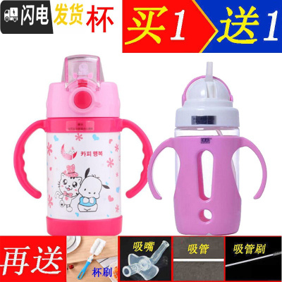 三维工匠婴儿吸管保温杯手柄不锈钢儿童吸管水杯防漏夏季宝宝水壶背带水瓶 新款粉白背带400