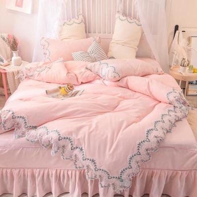 美帮汇仙女四件套北欧 少女心花边被套一米八床床罩式带裙边小香风粉