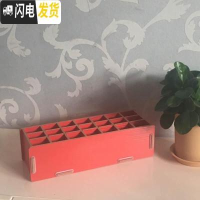 三维工匠大容量画室画笔收纳木质笔筒简约书房办公用品文具笔盒多格画笔插 红色