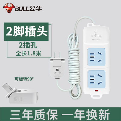 公牛两脚插排插座接线板2插头二脚眼项双孔带线延长转3脚三转换器