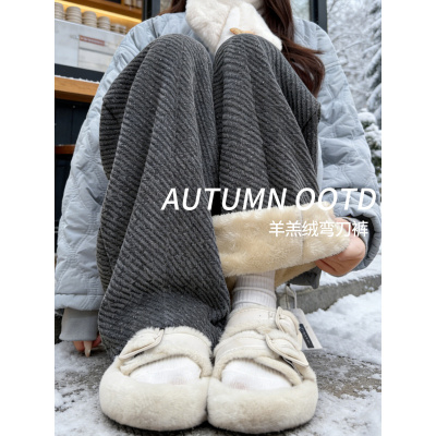 羊羔绒毛呢裤女秋冬季加厚保暖棉裤外穿小个子加绒香蕉阔腿裤