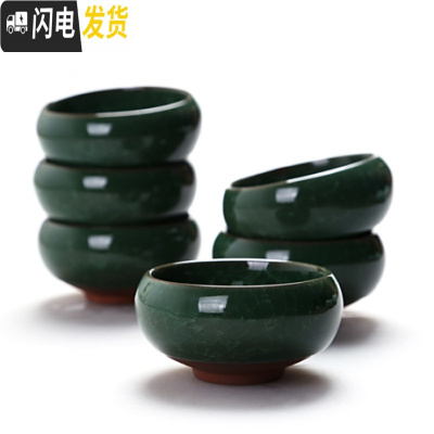 三维工匠青瓷茶具 手工茶杯 浮杯品茗杯 手绘功夫茶具茶杯 多色可选 孔雀绿冰裂杯6个