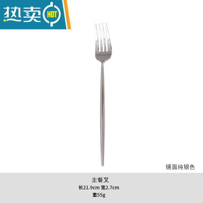敬平OUDING北欧风INS长柄304不锈钢叉子餐叉西餐主餐叉水果沙拉牛排叉 全银牙签