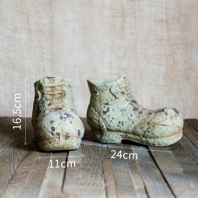 家柏饰(CORATED)水泥旧皮鞋创意花盆花器复古做旧多肉肉鞋子室内阳台种植 特惠一双(小)需打孔请备注 中