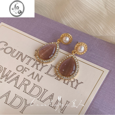 JiMi「凡尔赛城堡」复古宫廷温柔精致绝美优雅水滴紫色宝石耳环/耳夹