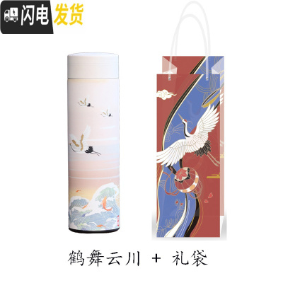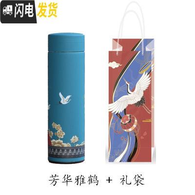 三维工匠中国风不锈钢保温杯女男复古宫廷国潮怀旧文艺创意送人茶杯水杯子 蓝色仙鹤+礼袋套杯