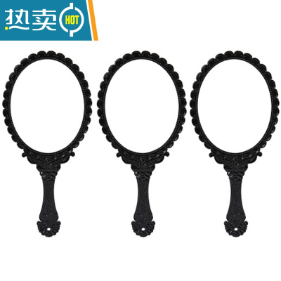 敬平复古宫廷风手柄化妆镜美容院专用纹绣镜便携随身手持手拿高清镜子便携式用镜 黑色--3个装