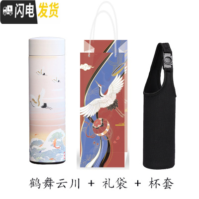 三维工匠中国风不锈钢保温杯女男复古宫廷国潮怀旧文艺创意送人茶杯水杯子 白色仙鹤+礼袋杯套套杯