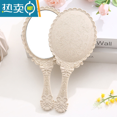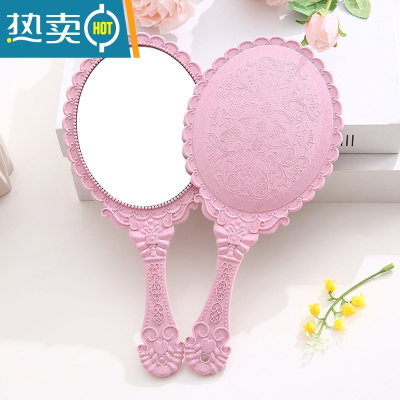 敬平复古宫廷风手柄化妆镜美容院专用纹绣镜便携随身手持手拿高清镜子便携式用镜 粉色--1个装