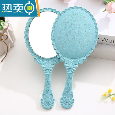 敬平复古宫廷风手柄化妆镜美容院专用纹绣镜便携随身手持手拿高清镜子便携式用镜 蓝色--1个装