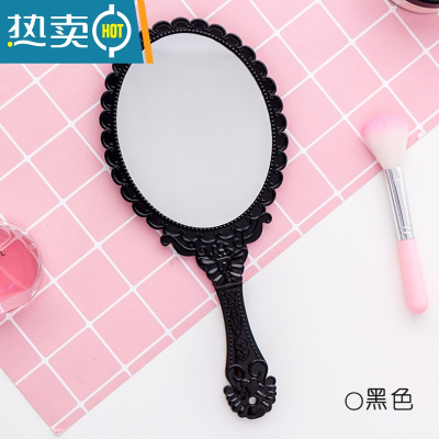 敬平复古宫廷风手柄化妆镜美容院专用纹绣镜便携随身手持手拿高清镜子便携式用镜 黑色--2个装