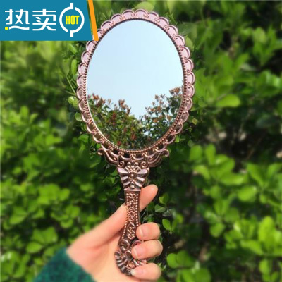 敬平复古宫廷风手柄化妆镜美容院专用纹绣镜便携随身手持手拿高清镜子便携式用镜 玫瑰金--1个装