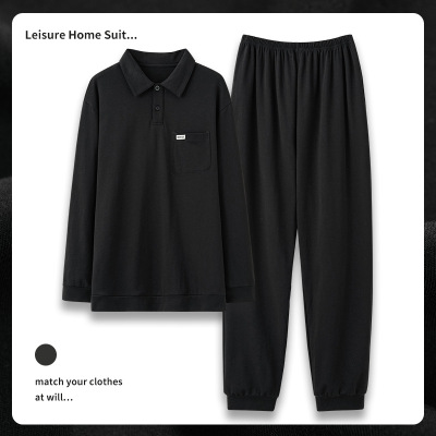睡衣男士春秋季长袖长裤简约家居服薄款棉质男大码休闲套装可外穿