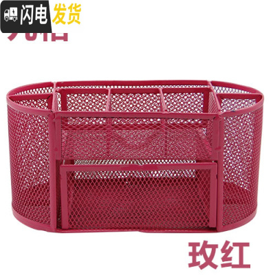 三维工匠3个铁艺多功能金属彩色笔筒塑料便签座文具时尚创意金属网状笔筒学生文具办公桌收纳盒子桌面摆 九格多功能笔筒(玫红)