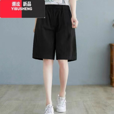 YIBUSHENG棉麻五分短裤女士季薄款大码中年妈妈高腰宽松休闲显瘦阔腿中裤