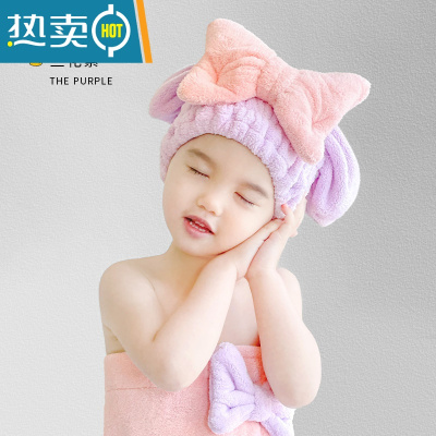 敬平儿童干发帽女童吸水速干擦头发毛巾洗头包头巾宝宝浴帽干发巾 兰花紫干发帽
