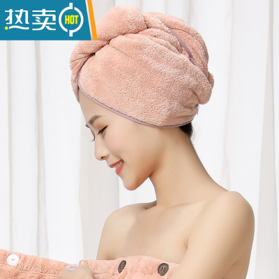 敬平干发帽快速擦干头发包头毛巾快干洗完头发的包头干湿帽直接戴干饭 加厚款[亮粉色]