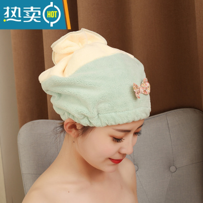 敬平干发帽女加厚干发擦头毛巾吸水柔软速干包长发 绿色 阳离子干发帽 +干发巾