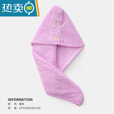 敬平干发帽吸水速干浴帽发帽包头巾加厚可爱洗头干发巾2021新款女 圆耳朵兰花紫